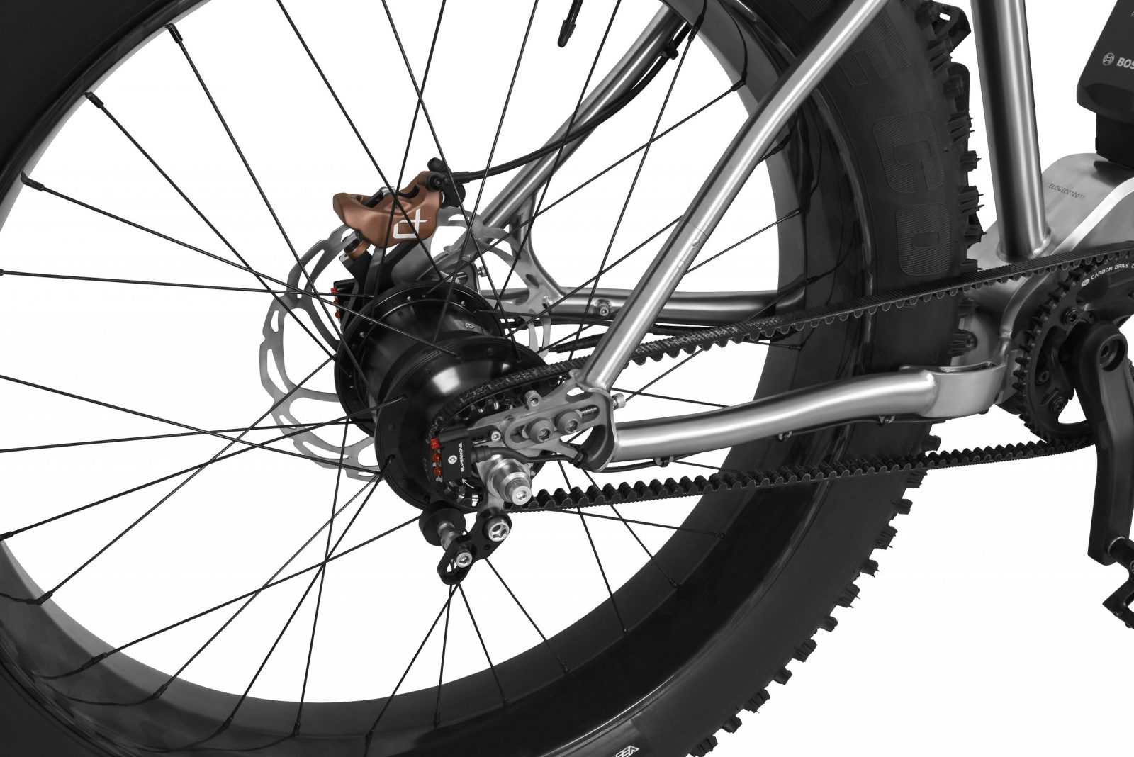 ELOM hat sich zum Ziel gesetzt ein E-Fatbike zu entwickeln das auf eine extrem robuste Schaltung baut und somit so wenig wie möglich Wartung und Pflege benötigt. Dadurch fiel die Entscheidung auf die robusteste Nabenschaltung, die man bekommen kann, eine ROHLOFF XXL E14 und auf einen Zahnriemenantrieb von GATES CARBON DRIVE.