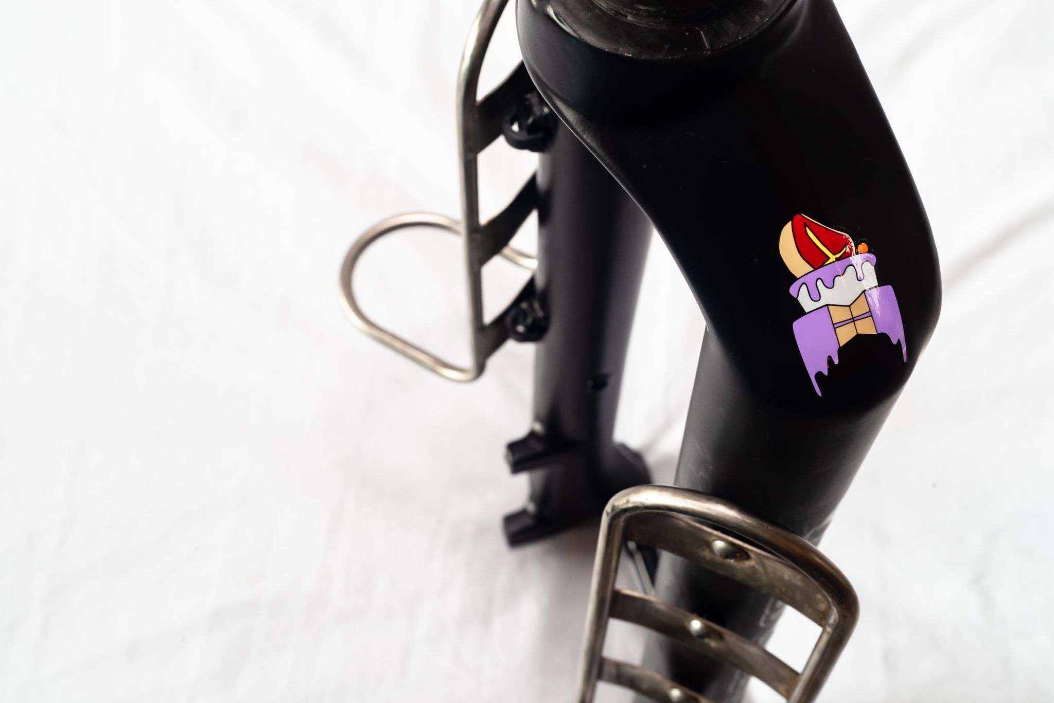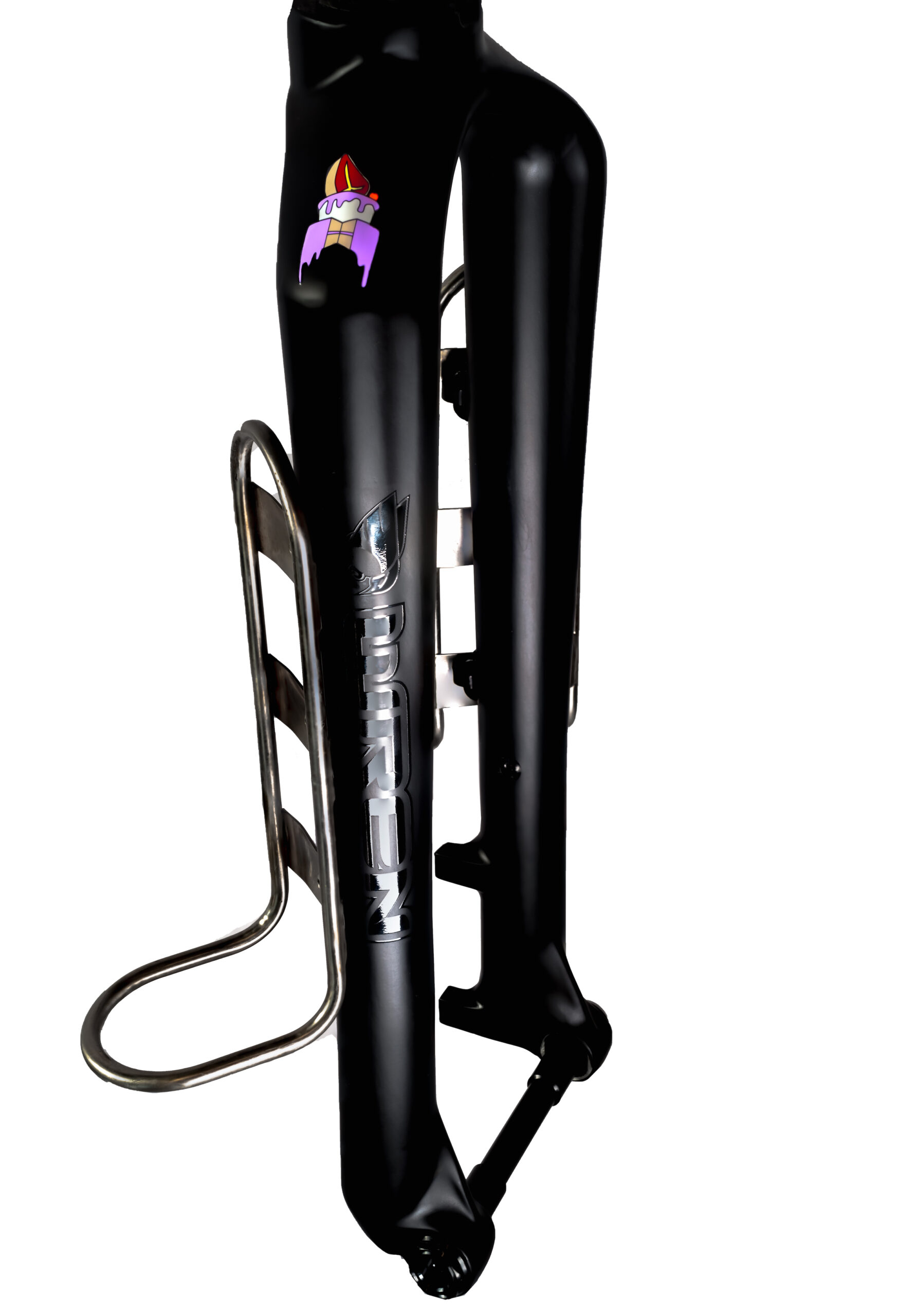 Die Gabel kommt mit dem fatten Beefcake Logo und je einem glänzend schwarzen Wren Logo pro Seite.